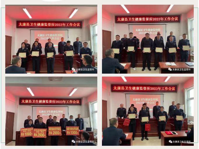对荣获年度卫生监督、学习强国、宣传报道的先进个人和“全省卫生健康监督执法办案能手”、“全市卫生健康监督执法技能状元”、“全市卫生健康监督执法技能标兵”称号的同志给予表彰;对荣获省、市优秀案卷的科室给予表彰;对荣获“全市第七届卫生健康监督技能比武团体一等奖”和“全市服务型行政执法技能演练团体二等奖”的团队给予表彰。